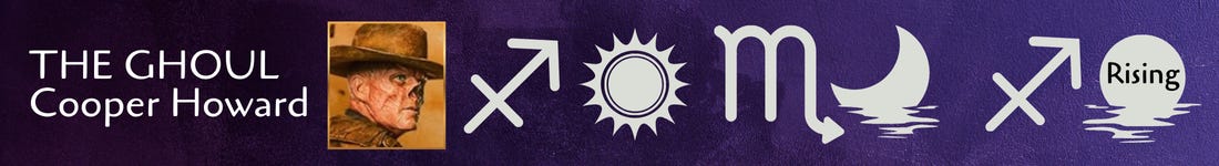 Ethics falls under Sagittarius. Sagittarius villains aren’t evil because they want power, glory, or riches. They are evil because the opposite of an ethical life is a cynical one. Cooper Howard was ethical. The Ghoul is cynicism incarnate.